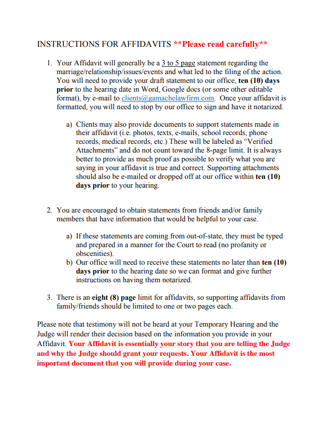 Instructions For Affidavits